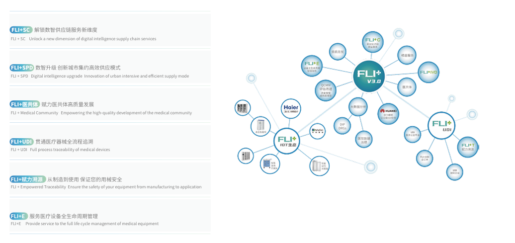 FLI+方案结合大数据分析、物联网设备以及可追溯信息系统等硬件软件、智能手段和专业深度服务,提供医用耗材、医疗设备、检验试剂产品的全流程精益管理,实现合理资源利用、减少浪费、全程追溯和精益提升,致力于为生产企业、经营企业和医疗机构提供更精准服务,助力医疗器械行业高质量发展.